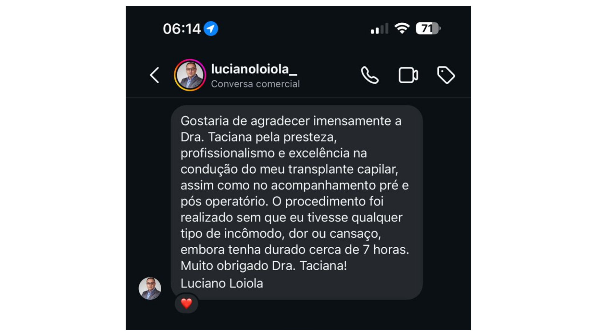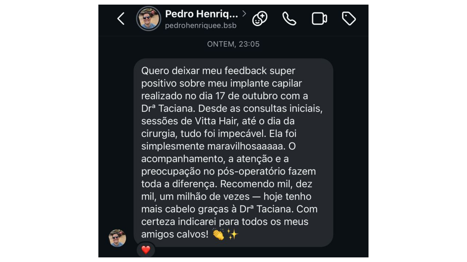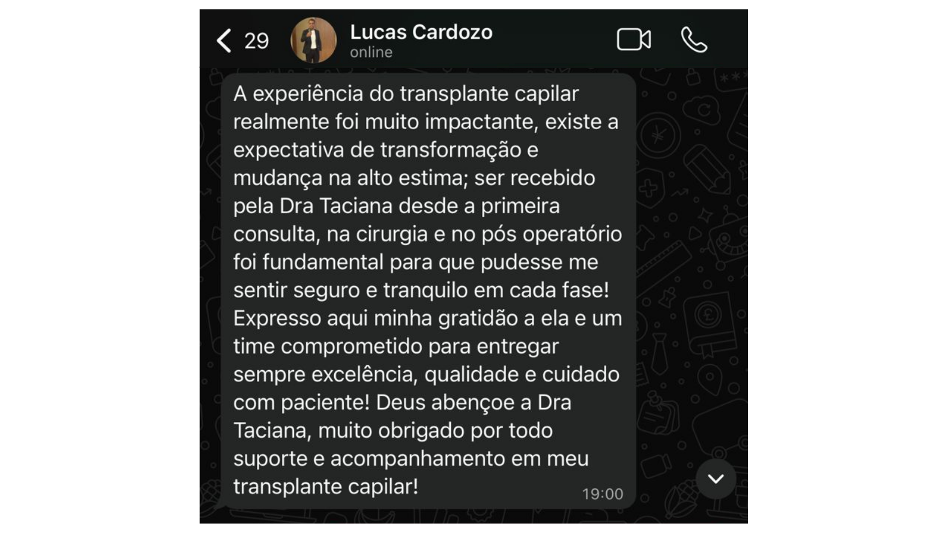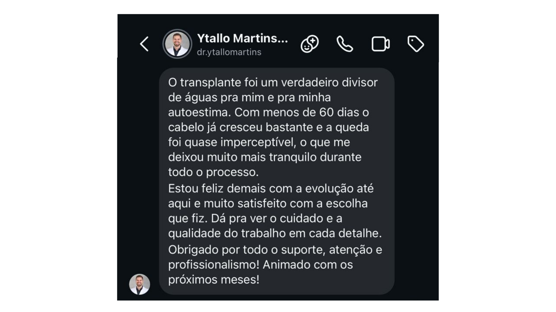 Com ampla experiência na técnica FUE, conduz cada tratamento de forma personalizada, garantindo segurança, naturalidade e acompanhamento completo do pré ao pós-operatório.